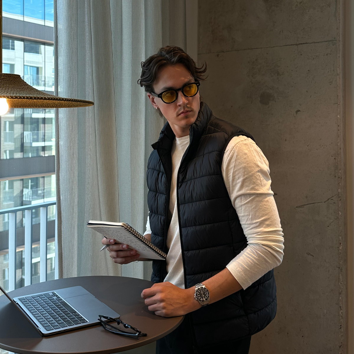 Blue light blockers help reduce digital eye strain caused by prolonged screen use, while improving visual comfort by reducing glare. When used in the evening, they may support better sleep quality by limiting blue light exposure before bedtime. They can also help reduce screen-related headaches and make long periods of work or gaming more comfortable for the eyes. They are especially useful essentials for people who spend long hours on screens, such as busy professionals, founders, and highly driven individuals who rely on digital devices throughout the day.