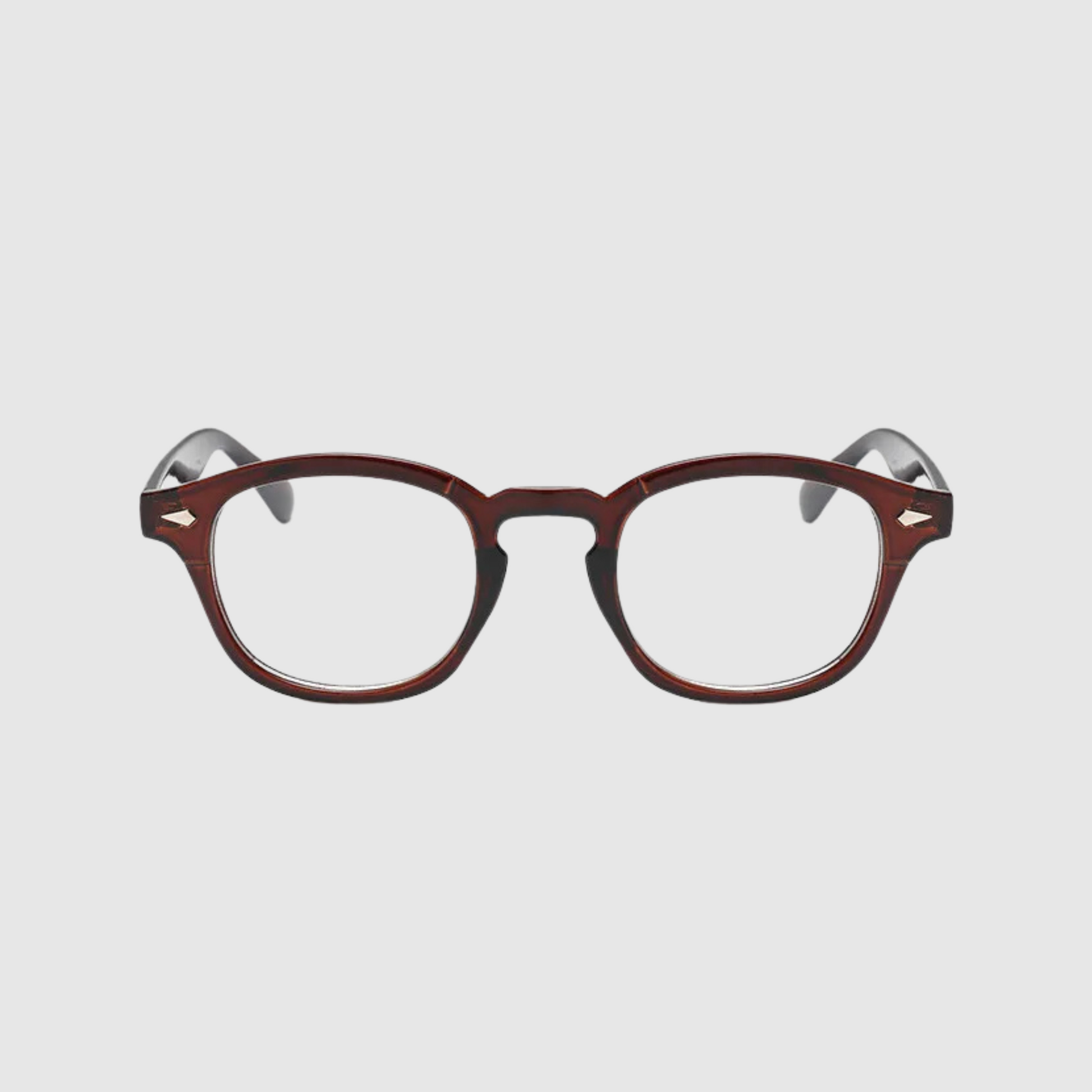 Meet BRUN, your daily go to. All day comfort, every day style. Tortoiseshell frame, clear blue light blocker lenses.