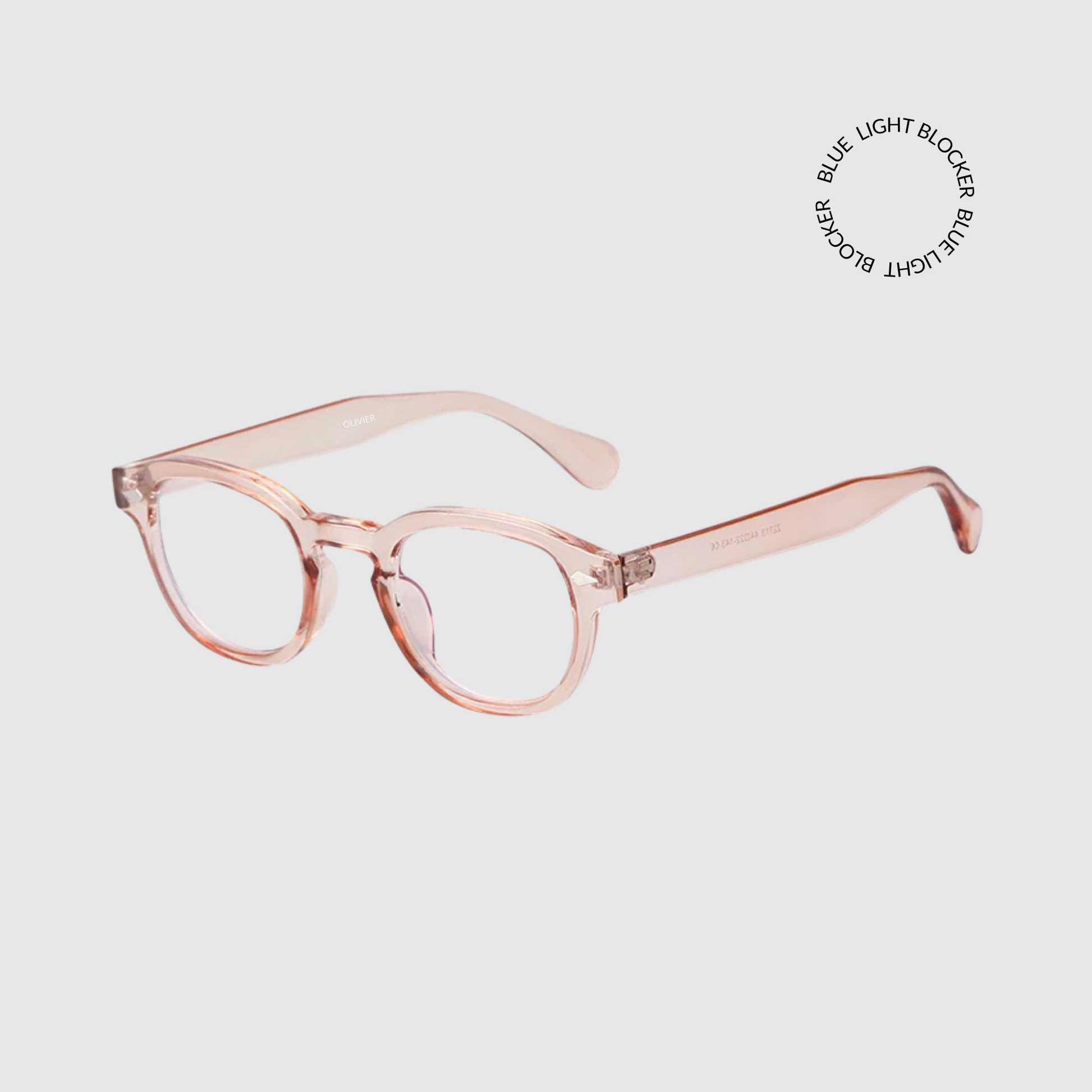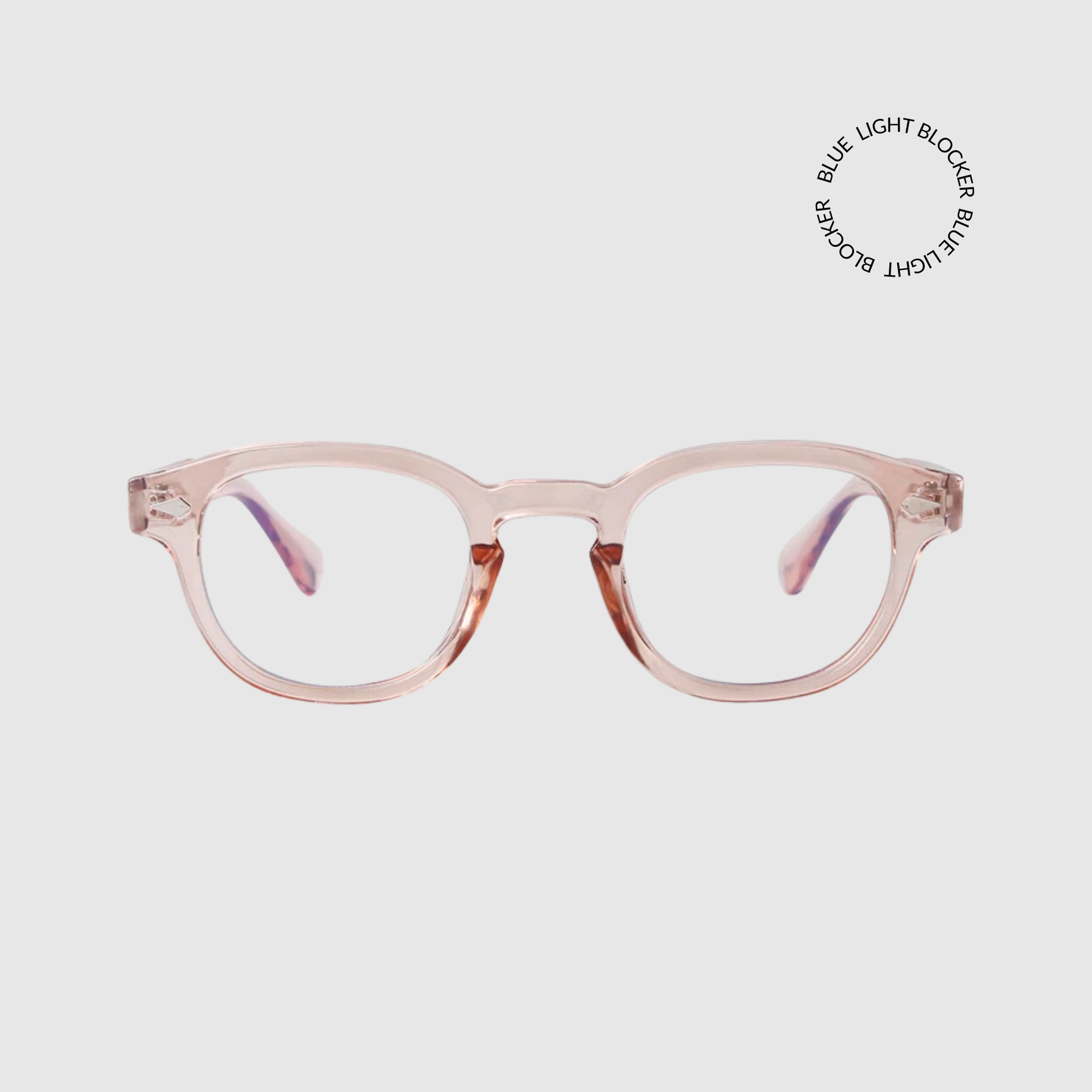 Meet ROSE, your daily go to. Clear peach frames, clear blue light blocker lenses.