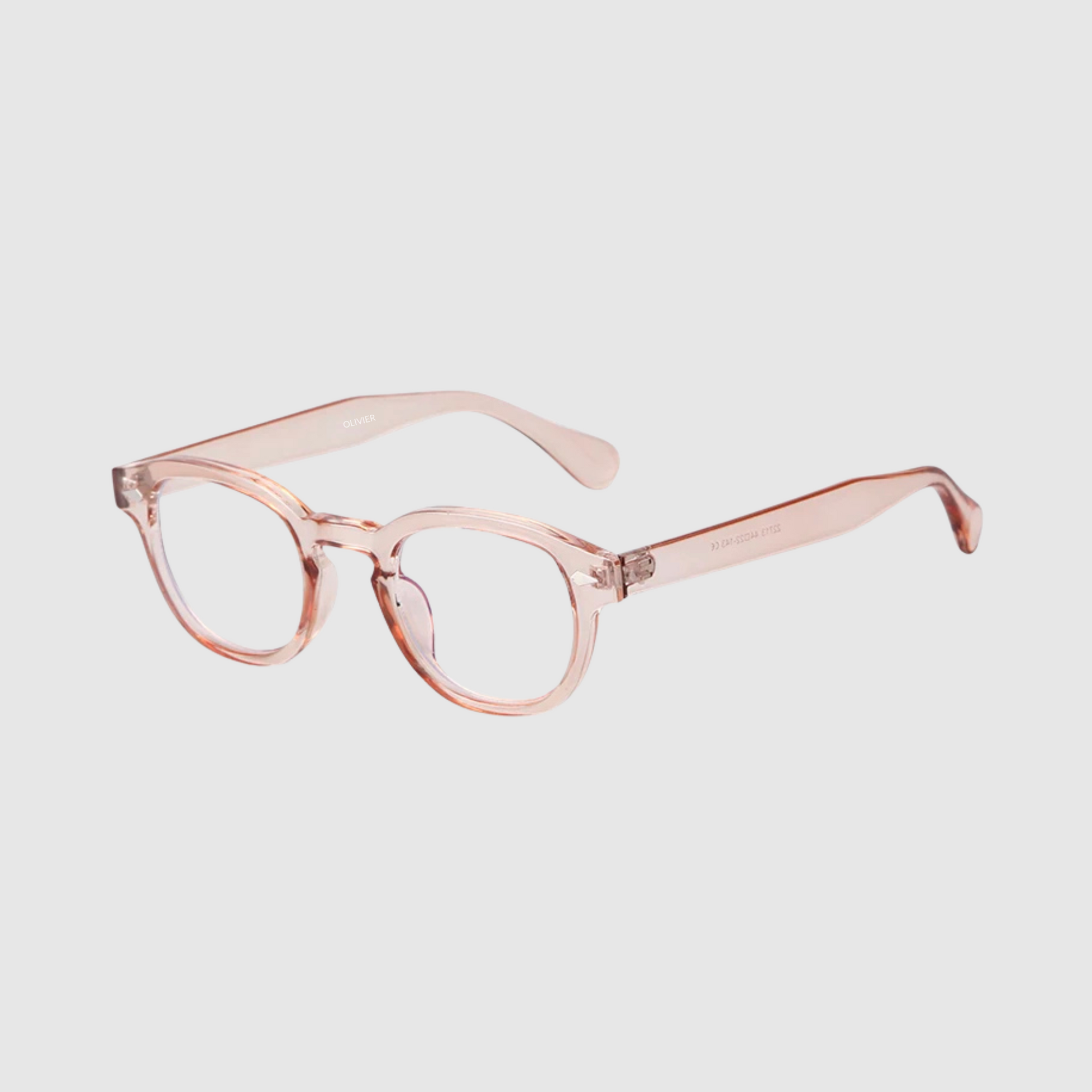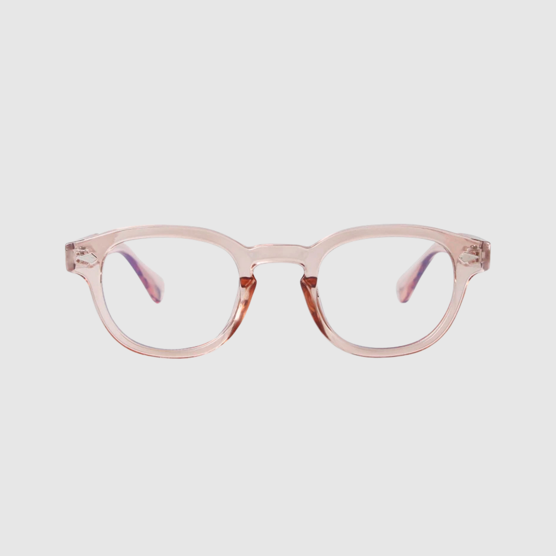 Meet ROSE, your daily go to. All day comfort, every day style. Clear peach frames, clear blue light blocker lenses.