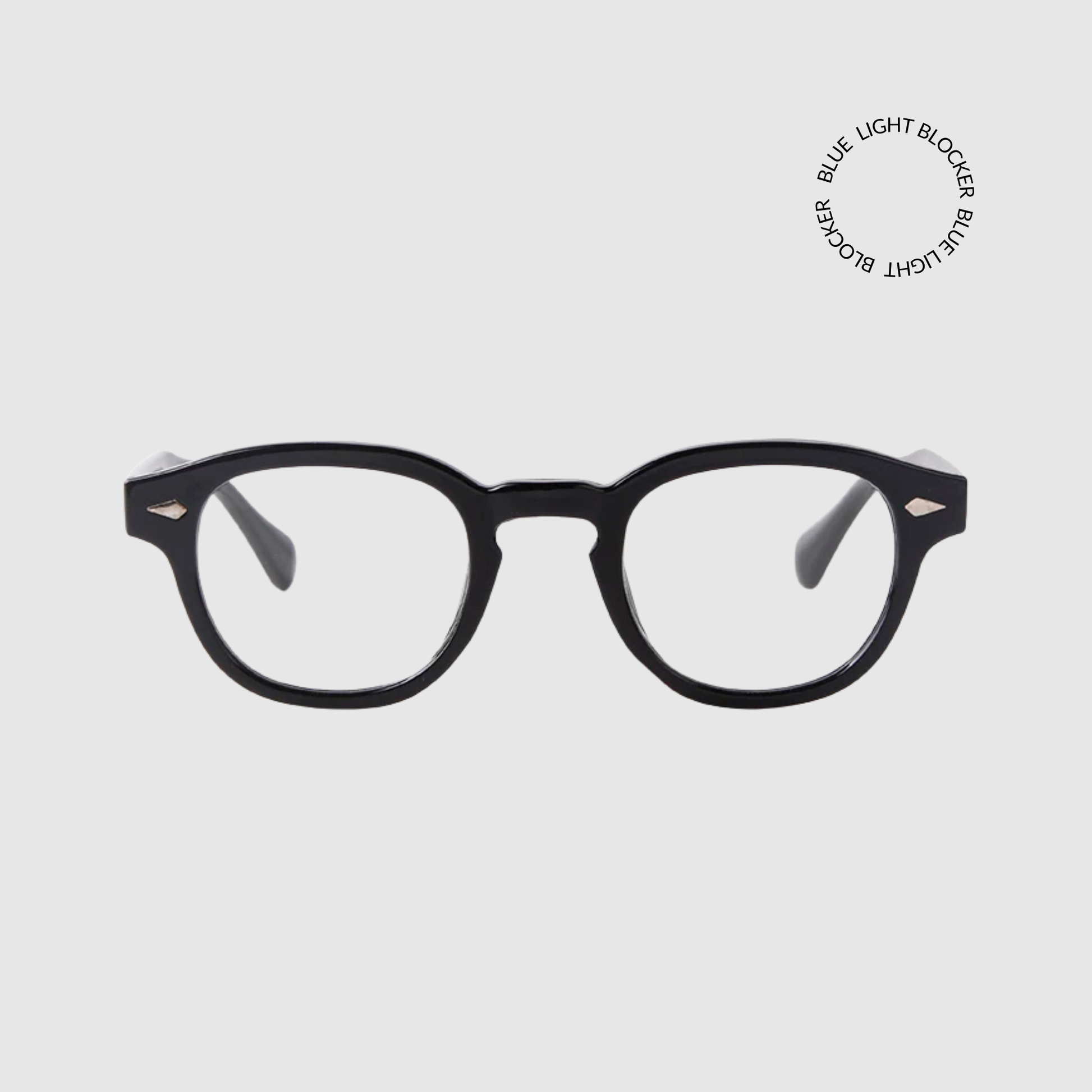 Meet WAYNE, your daily go to. Black frame, clear blue light blocker lenses.